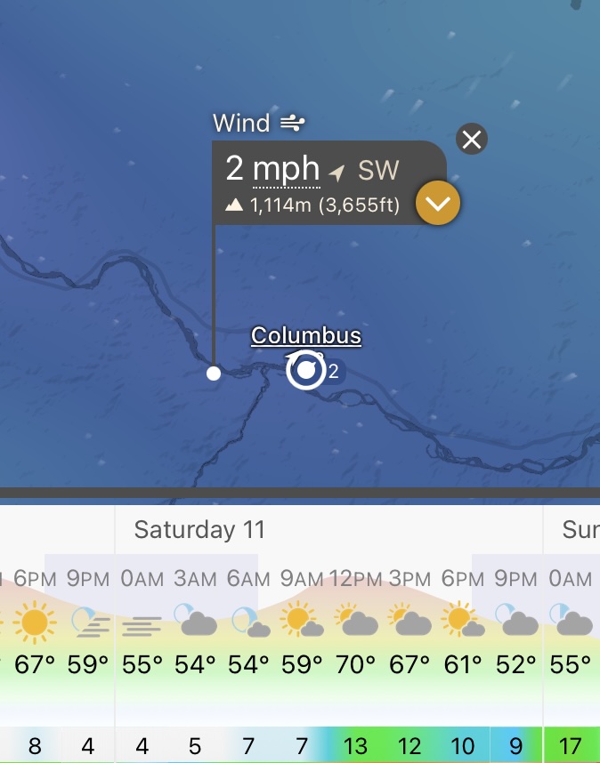 Here is the WINDY Premium forecast for Columbus as of this moment. Brisk, to put it mildly.