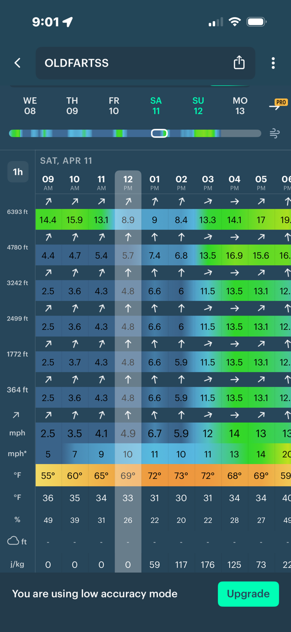 The weather looks pretty good for spring conditions. Current Windy forecast attached. We will fly ALES5J. This format will allow folks to go high or range out as conditions dictate. Those using fixed altitude limiters may set them for 100, 150 or 200 meters. Changes during the contest will be permitted.